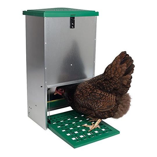 - Wenn Sie einen solchen Automaten auf der Weide aufstellen, werden sich möglicherweise auch andere Tiere an dem Hühnerfutter bedienen
