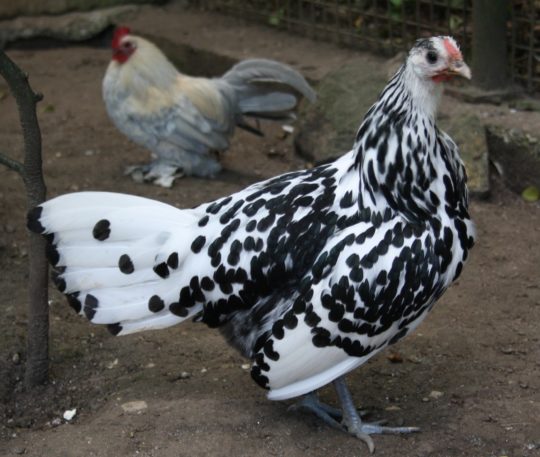 robust, kälteunemfindlich, gute Flugfähigkeit, scheue Hühner, mit Haube